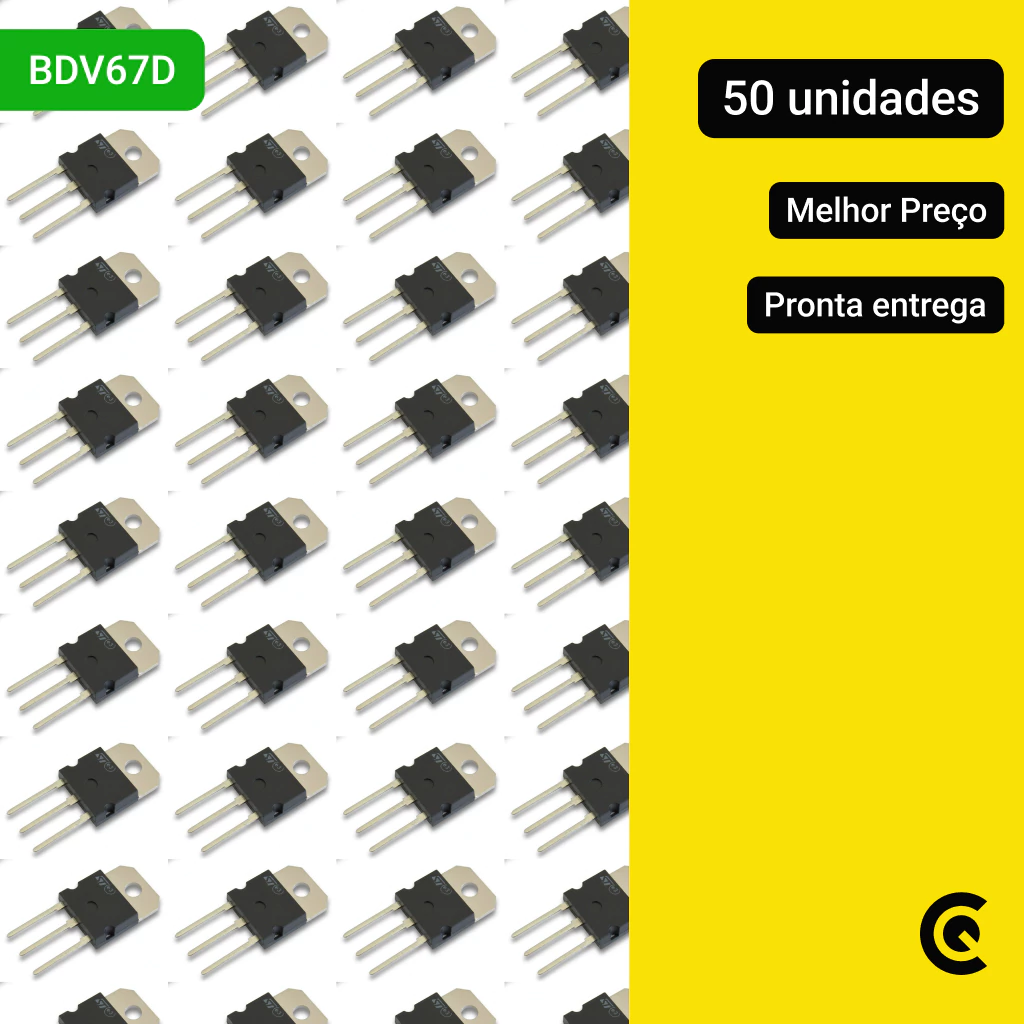 O BDV67D é um transistor Darlington NPN de alta corrente, projetado para aplicações que exigem grande ganho de corrente, robustez e excelente desempenho em potência. Suportando até 100V e 12A, é amplamente utilizado em drivers, amplificadores de áudio, controles de motores, fontes e aplicações industriais.