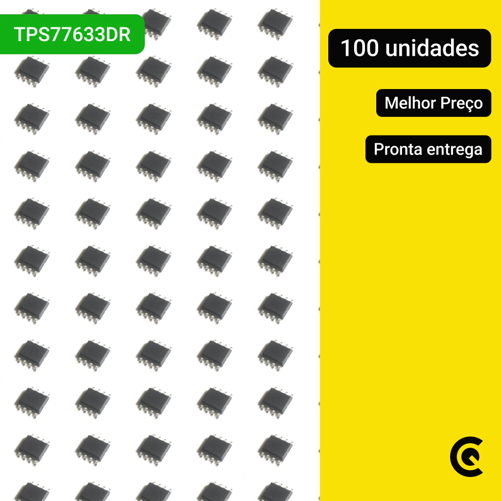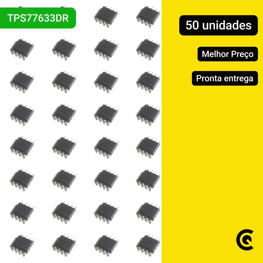 Com baixa queda de tensão (low dropout) e resposta rápida a variações de carga, o TPS77633DR garante alimentação limpa e estável, tornando-se uma escolha frequente em dispositivos embarcados, eletrônica de consumo, telecomunicações e equipamentos industriais.